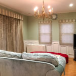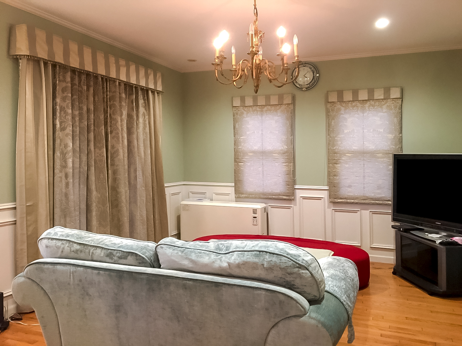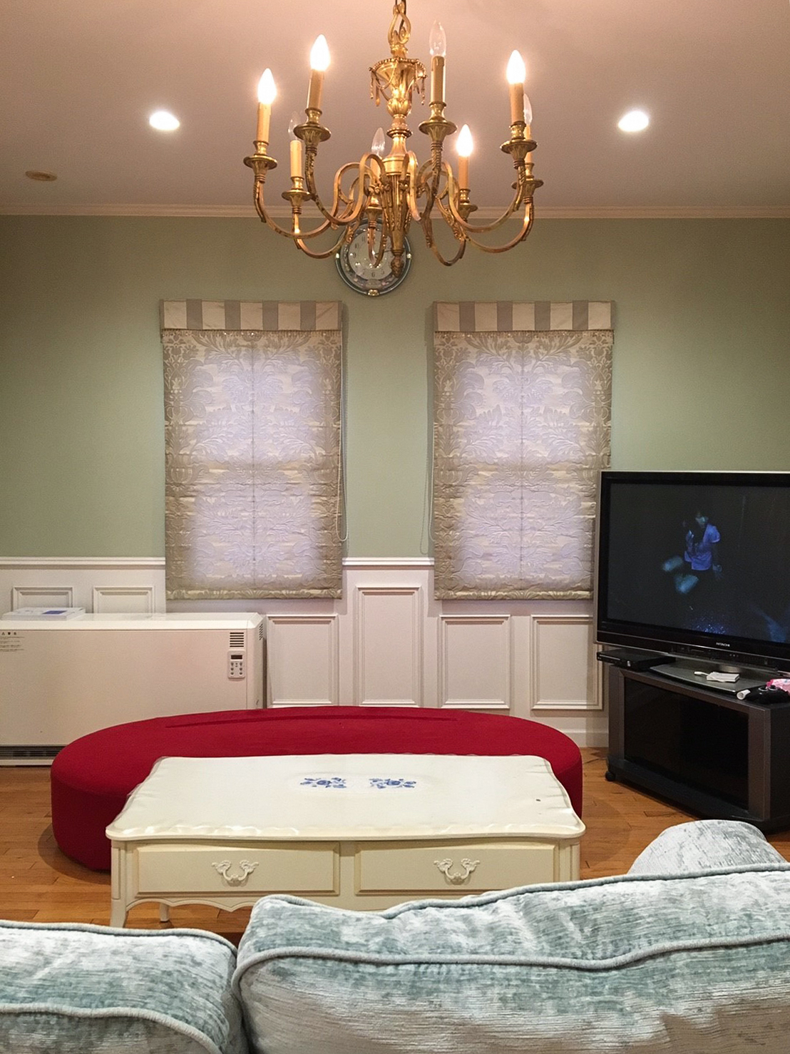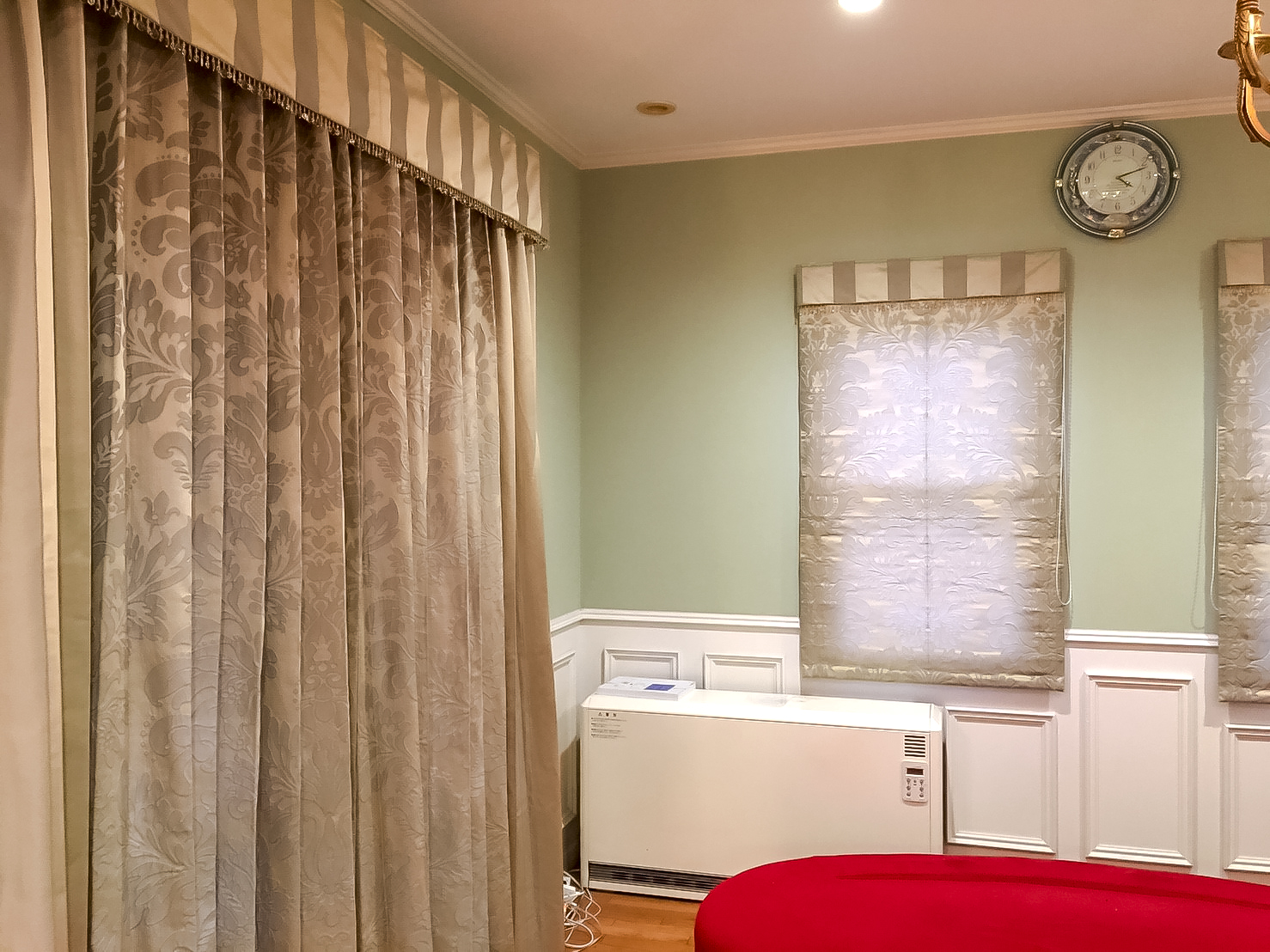 キッチンスペースの3連の上げ下げ窓にプレーンシェードをお取り付けしました。