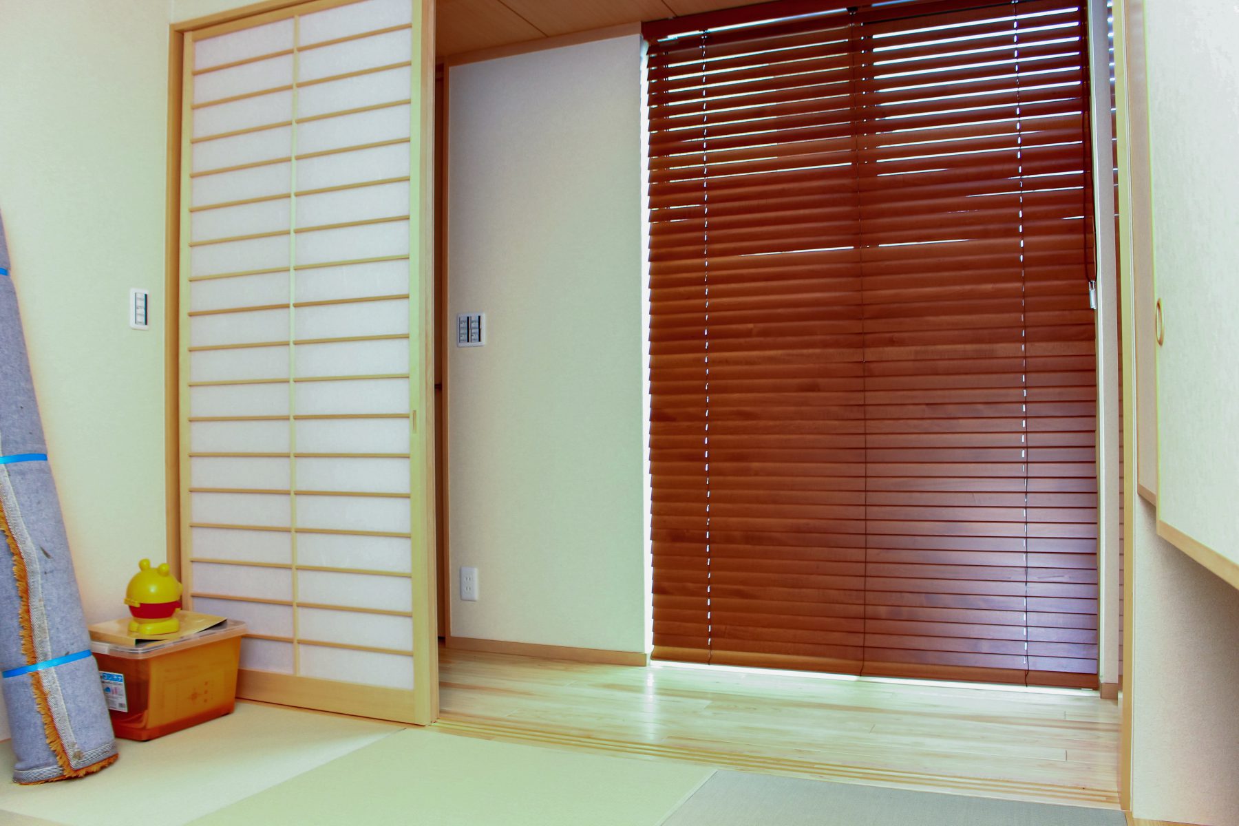 和室前の廊下には、ウッドブラインドをお取り付けし、全体的にナチュラルで可愛らしい雰囲気です。