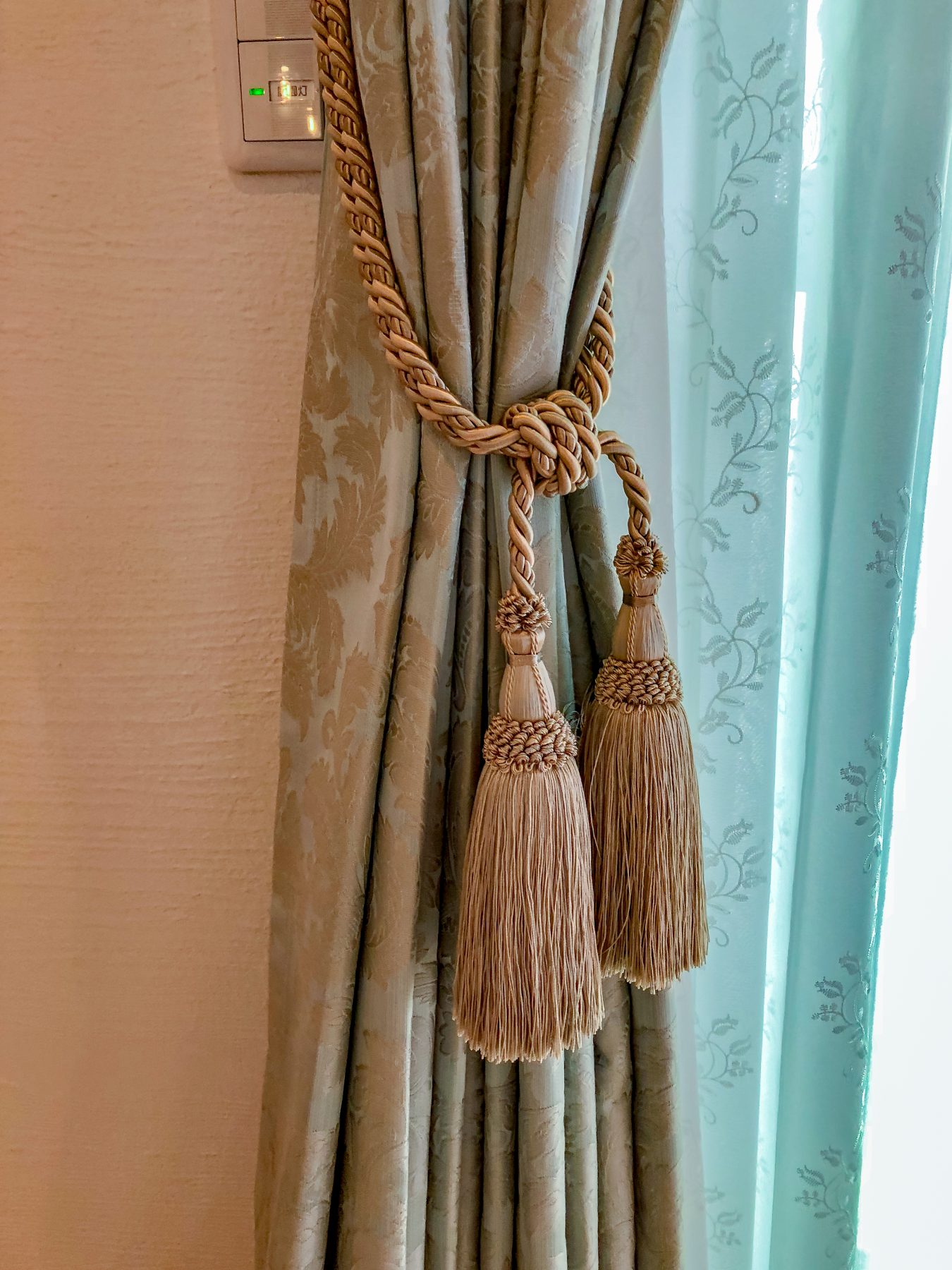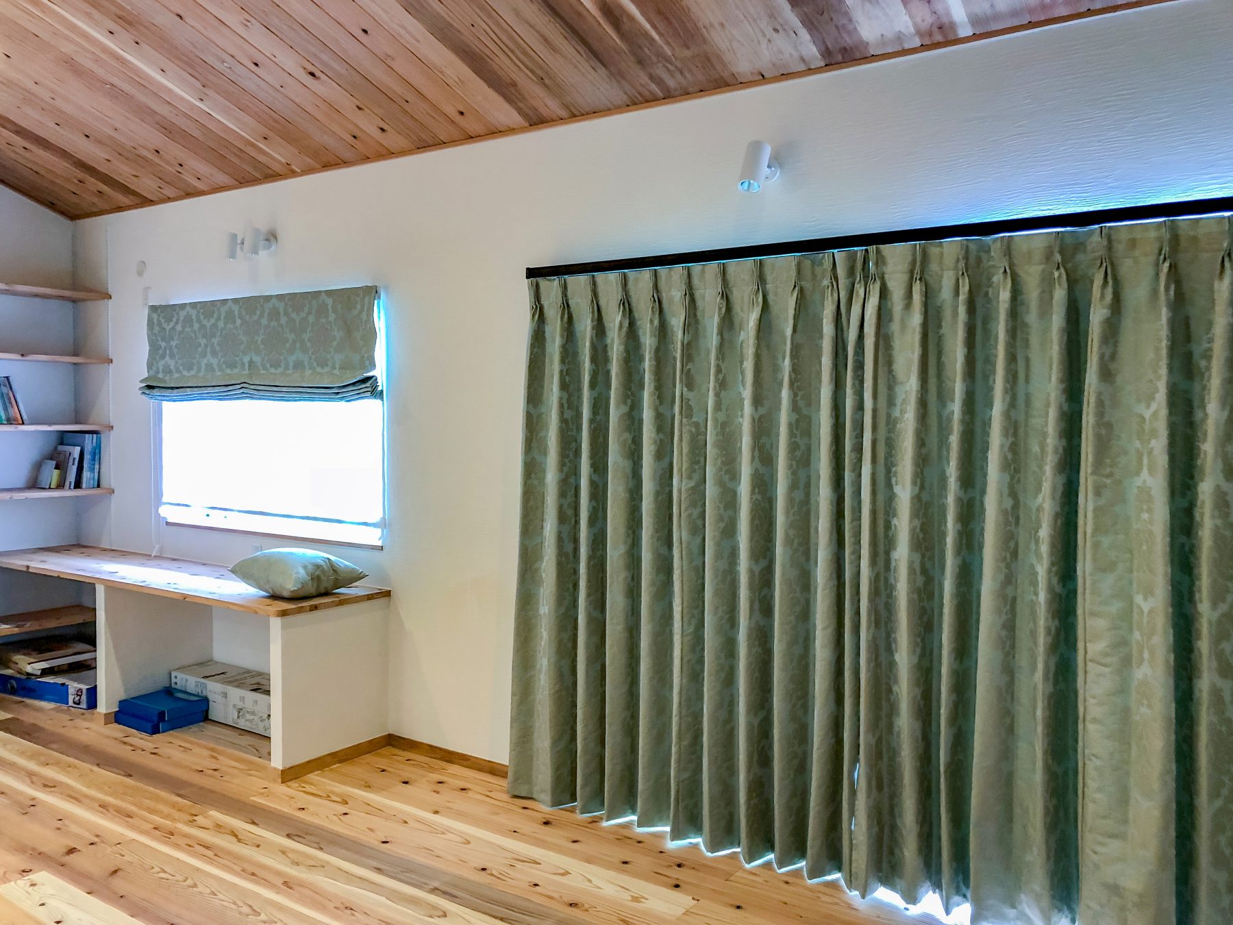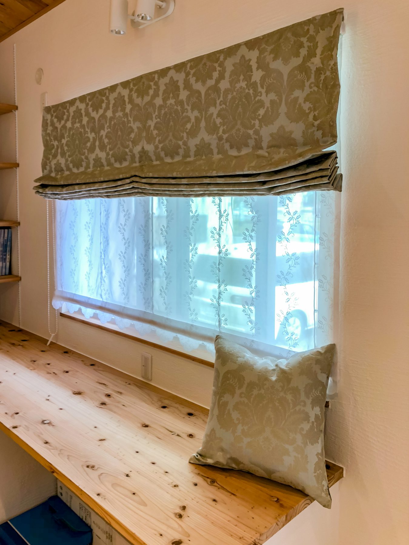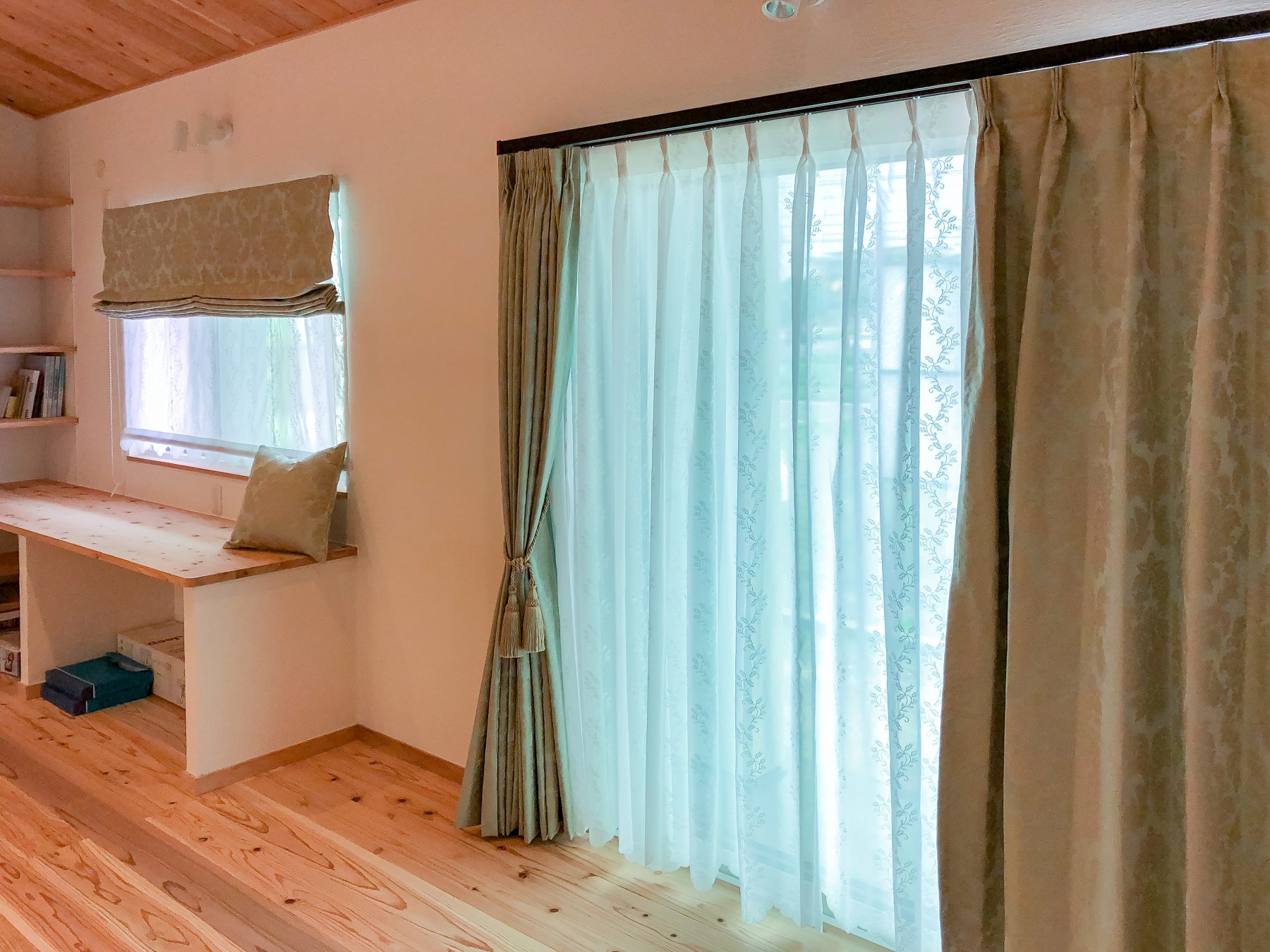ダマスク柄のクラシックな輸入カーテンを取り付けました。