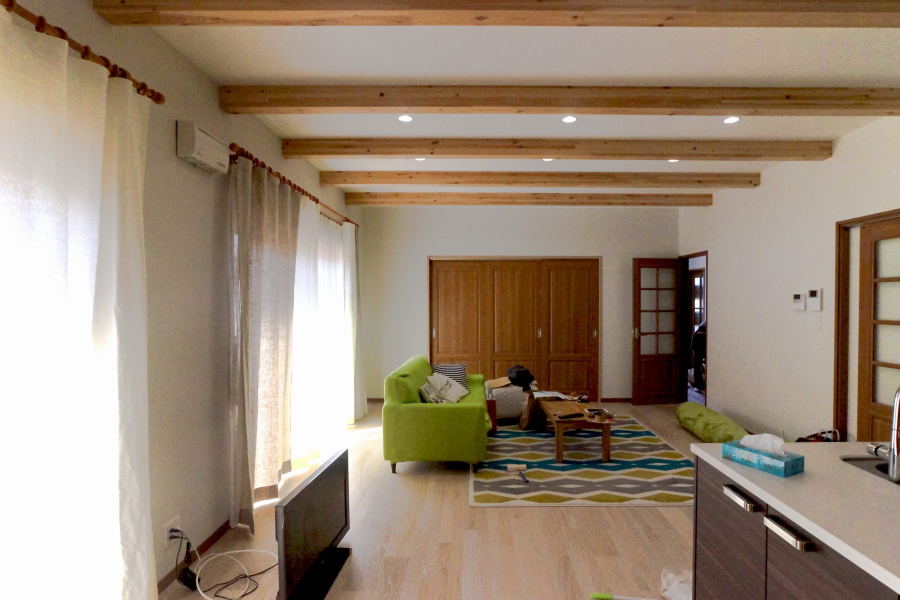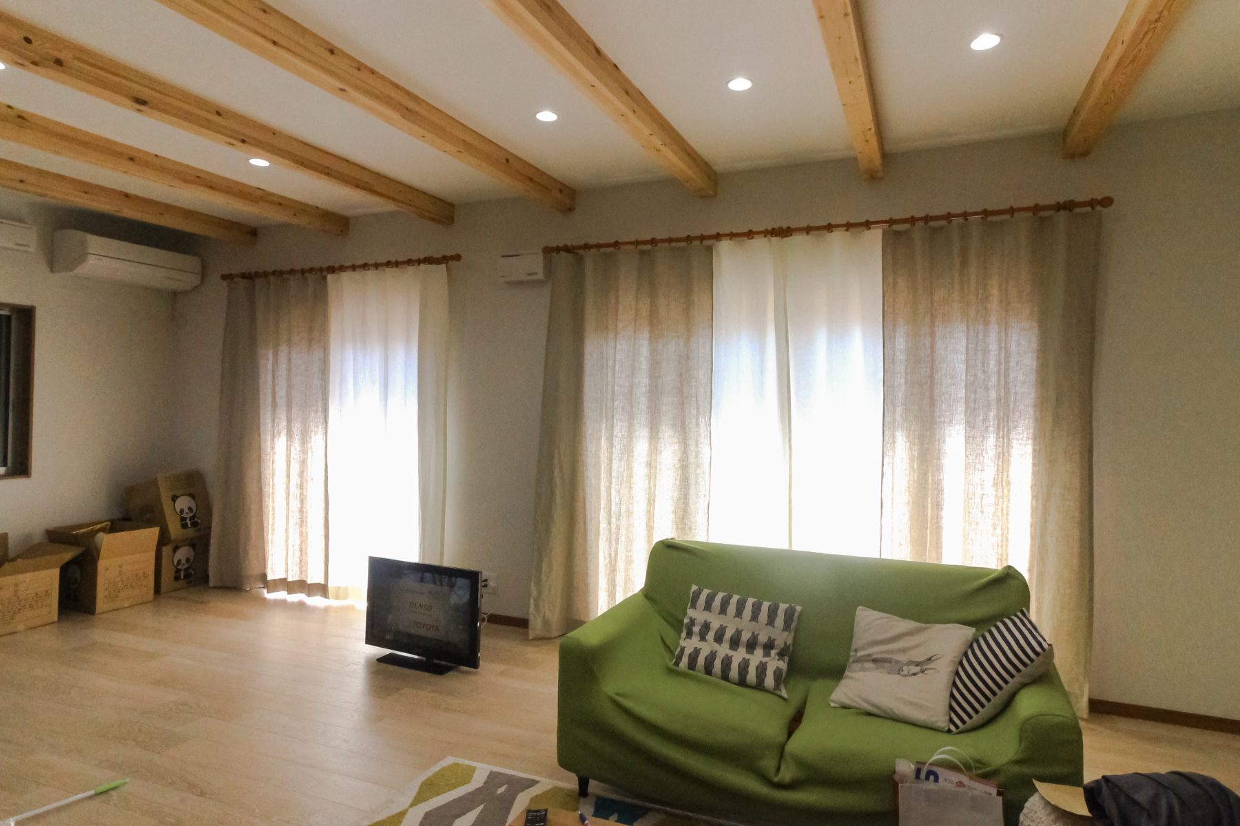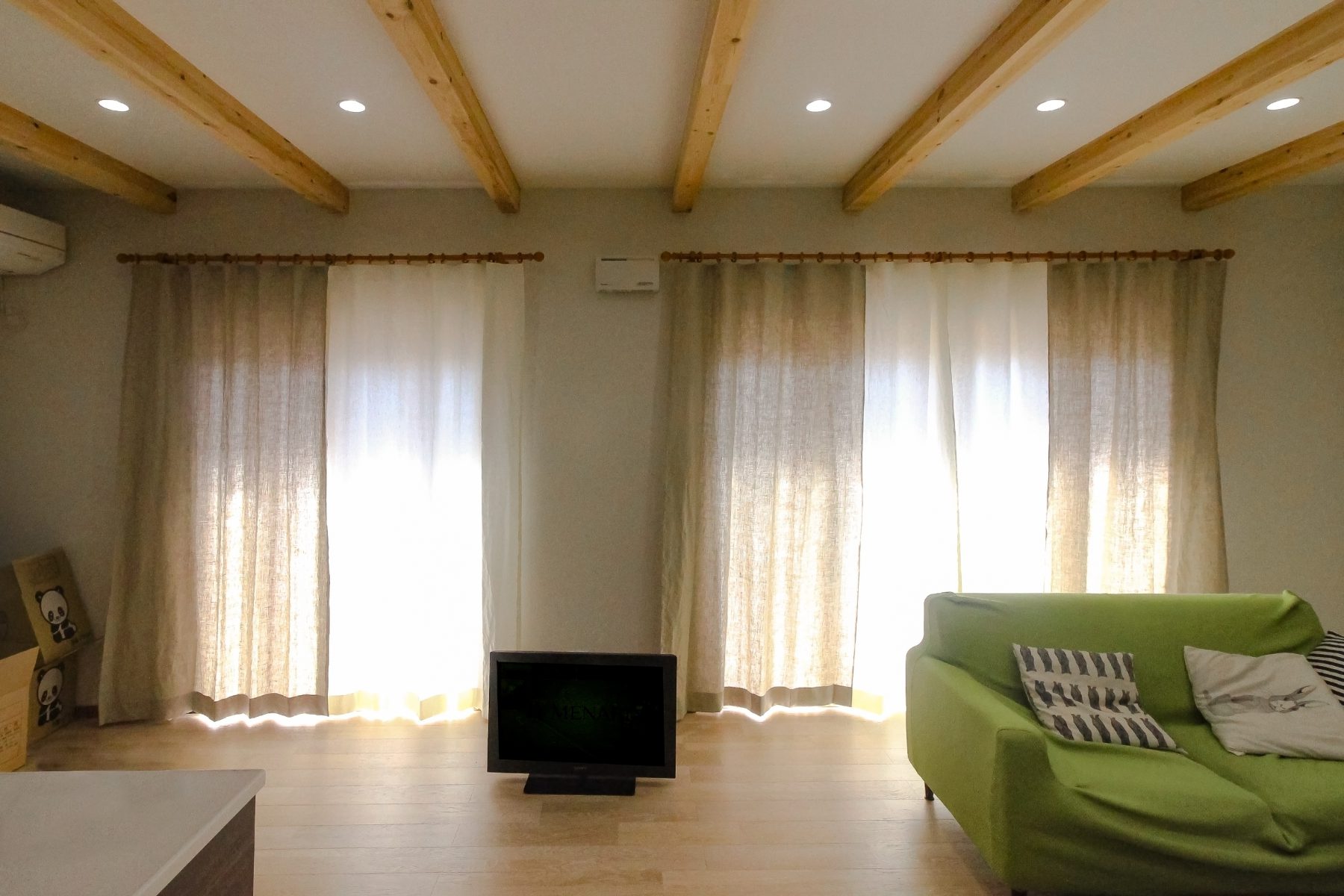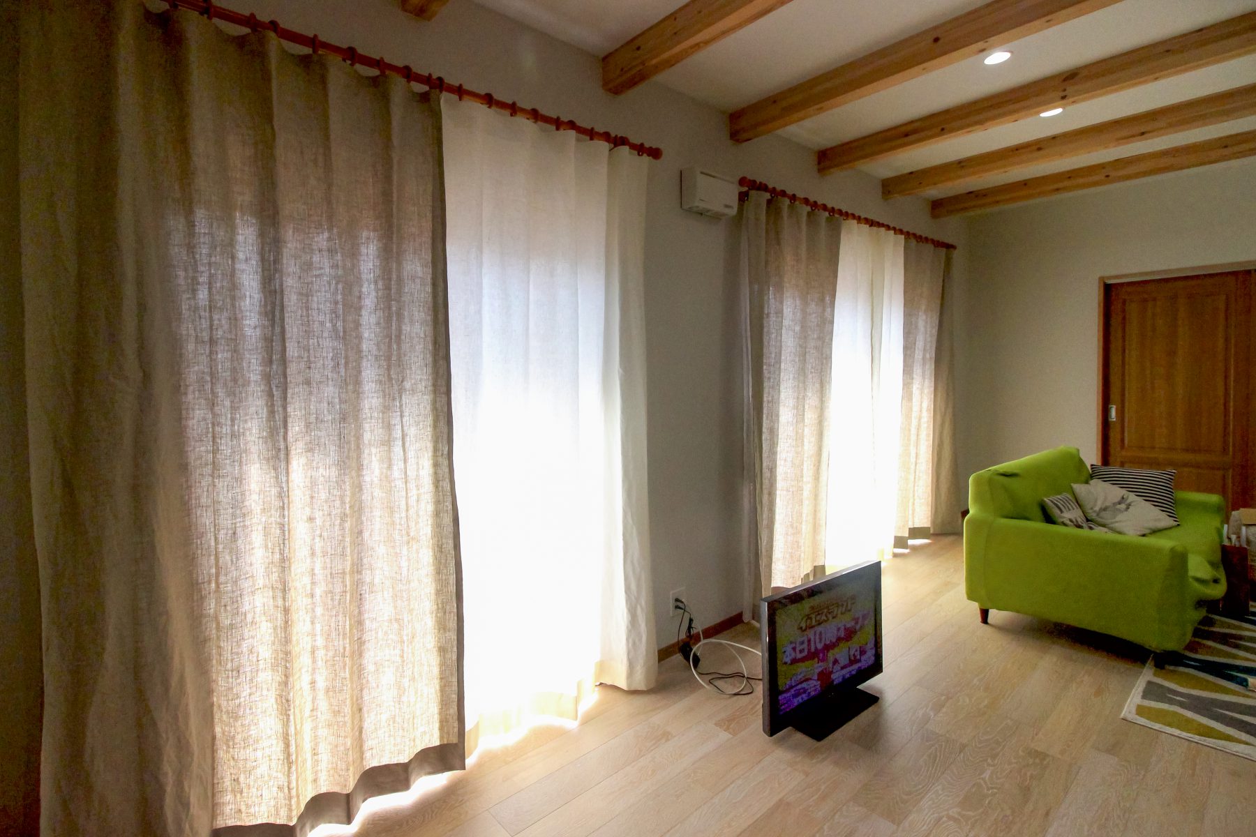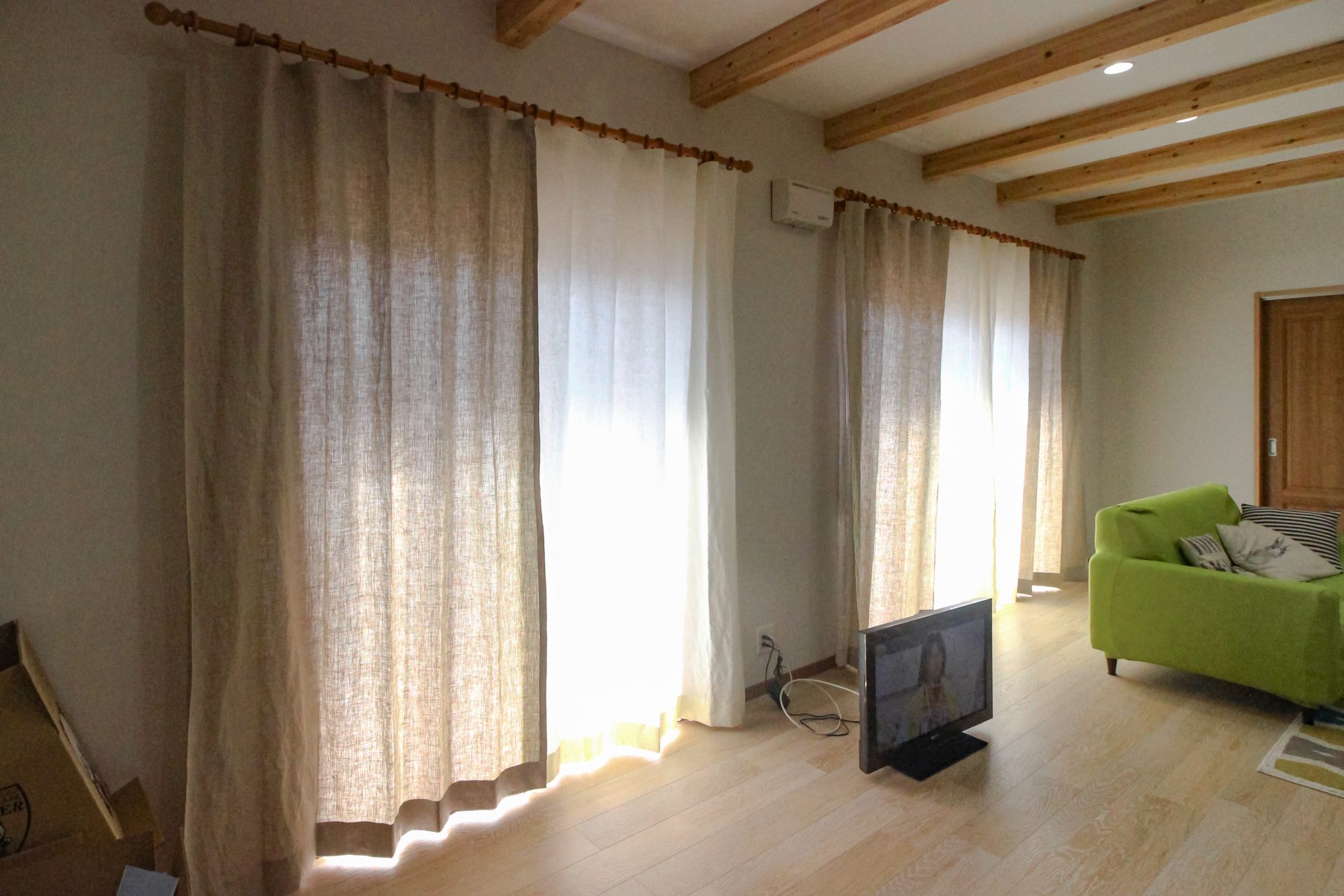 天然な家にはカーテンも天然が合います。