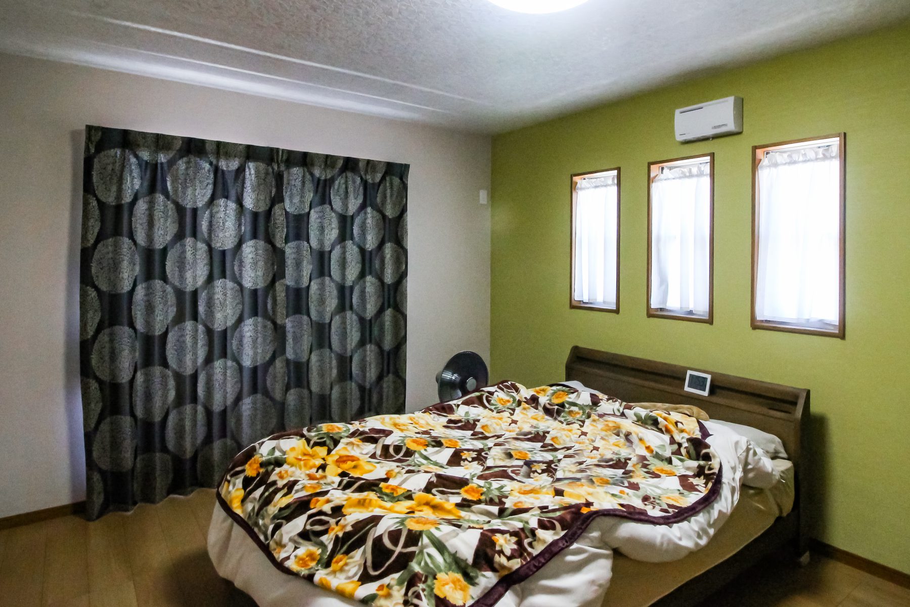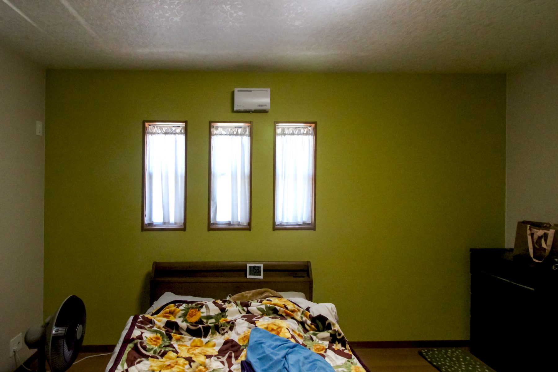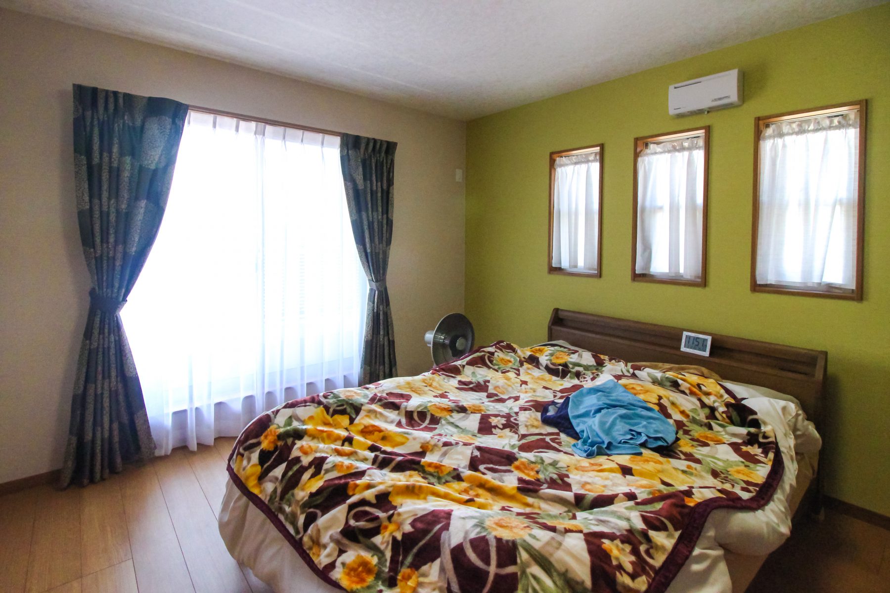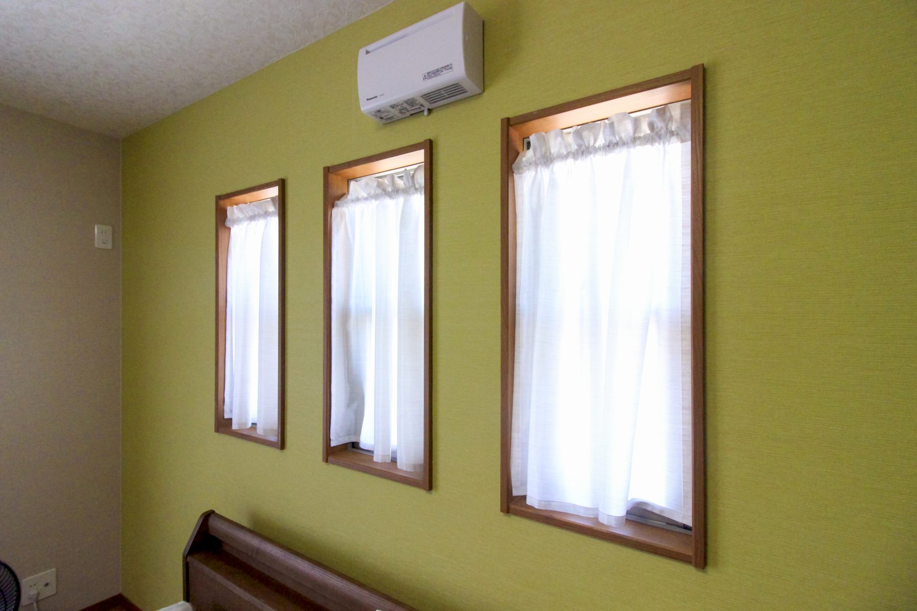 2階のお部屋には3連のカフェカーテン。