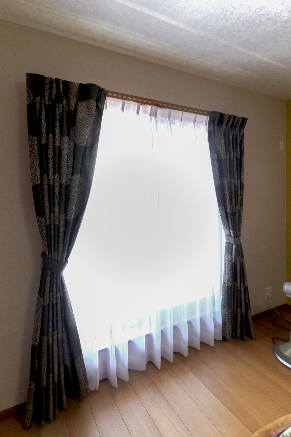 ただ、取り付けてもSARAらしくないので、2色の無地を組み合わせ、カーテンレールは