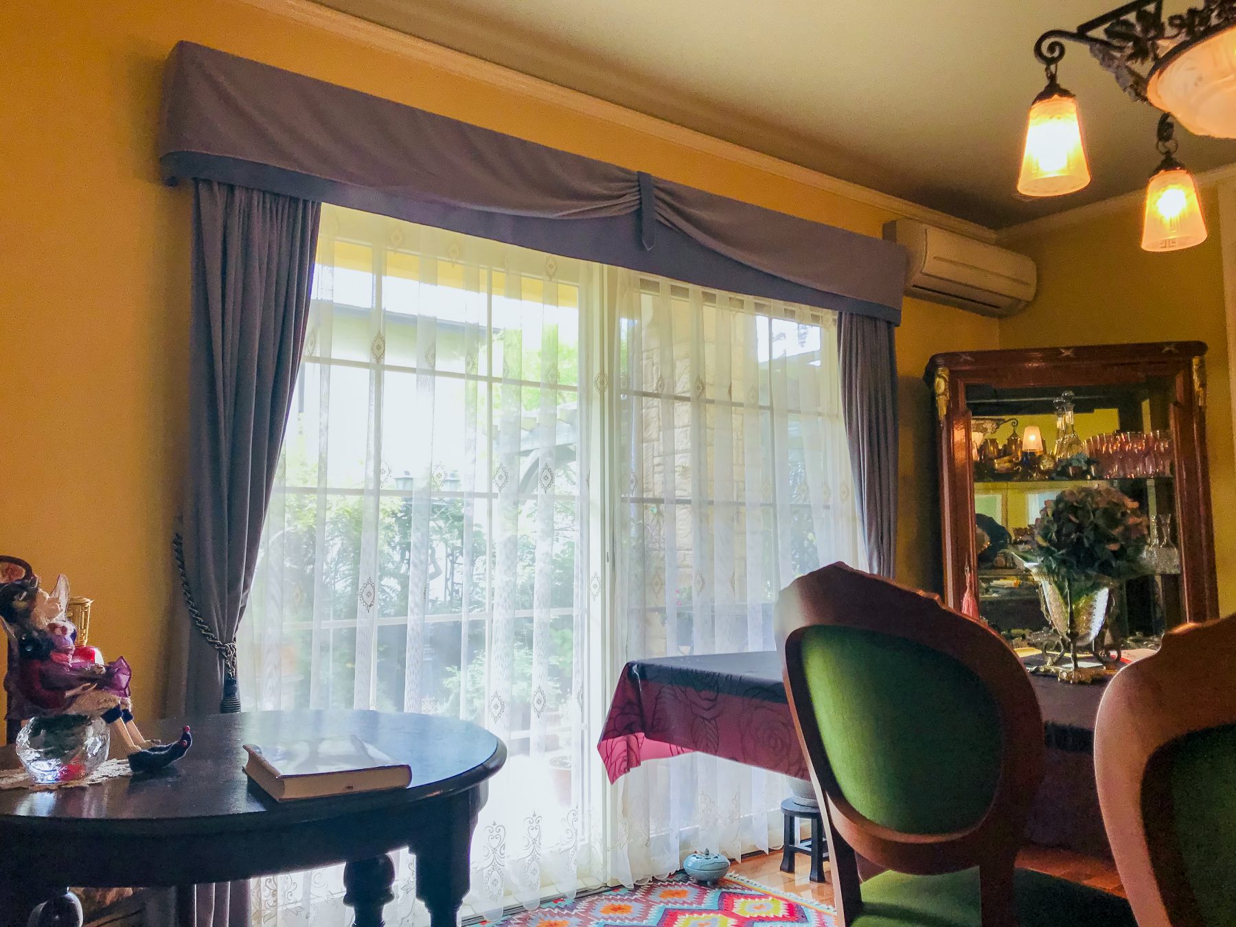 バランス(カーテンの上飾り)も同じ生地でデザインしました。
