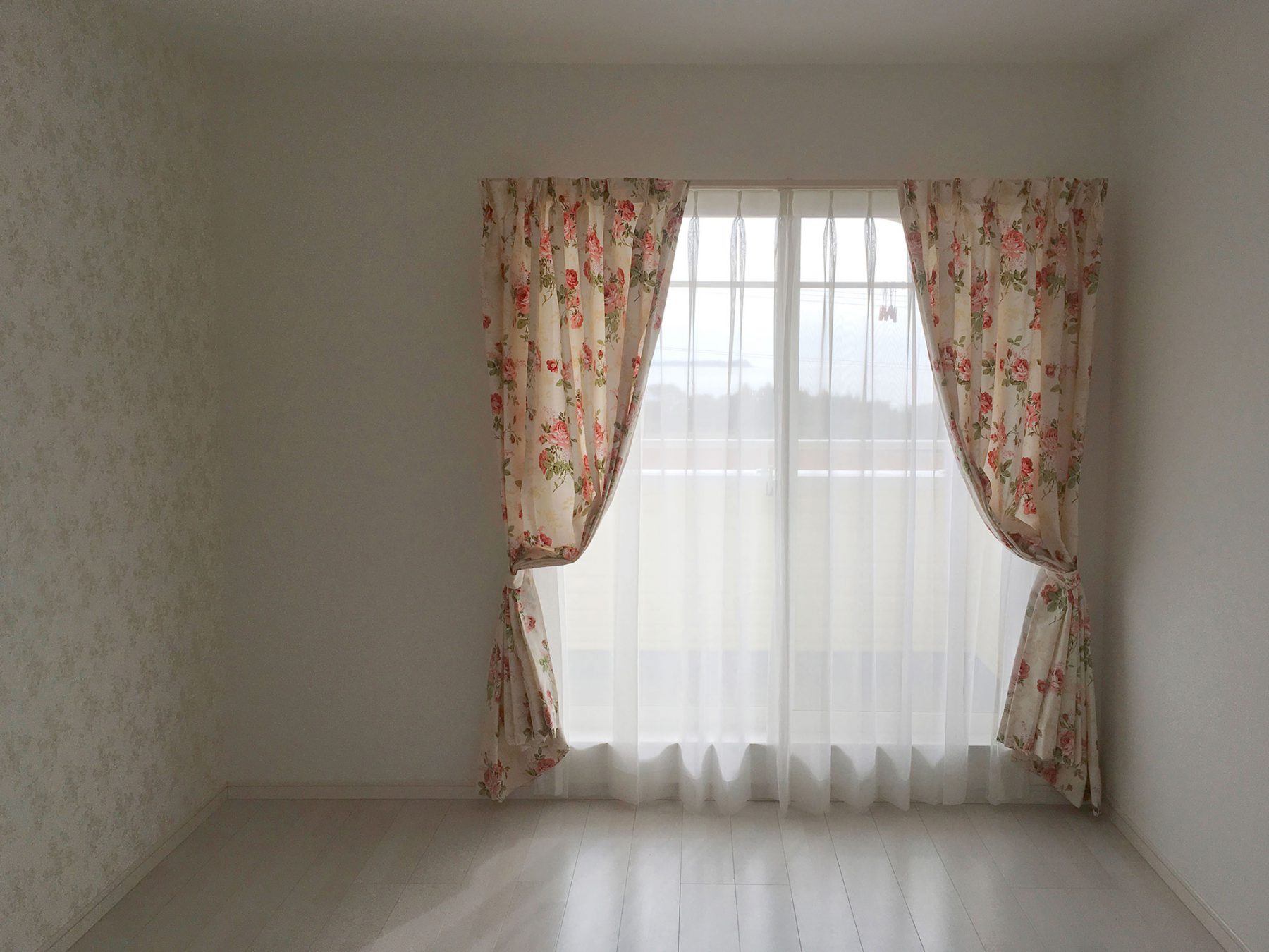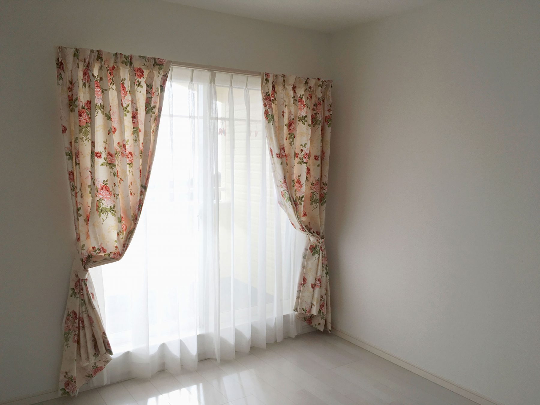写真のように、カーテンをタッセルで留めるだけでも印象は全く変わります!是非、ご家庭でも試してみてください!