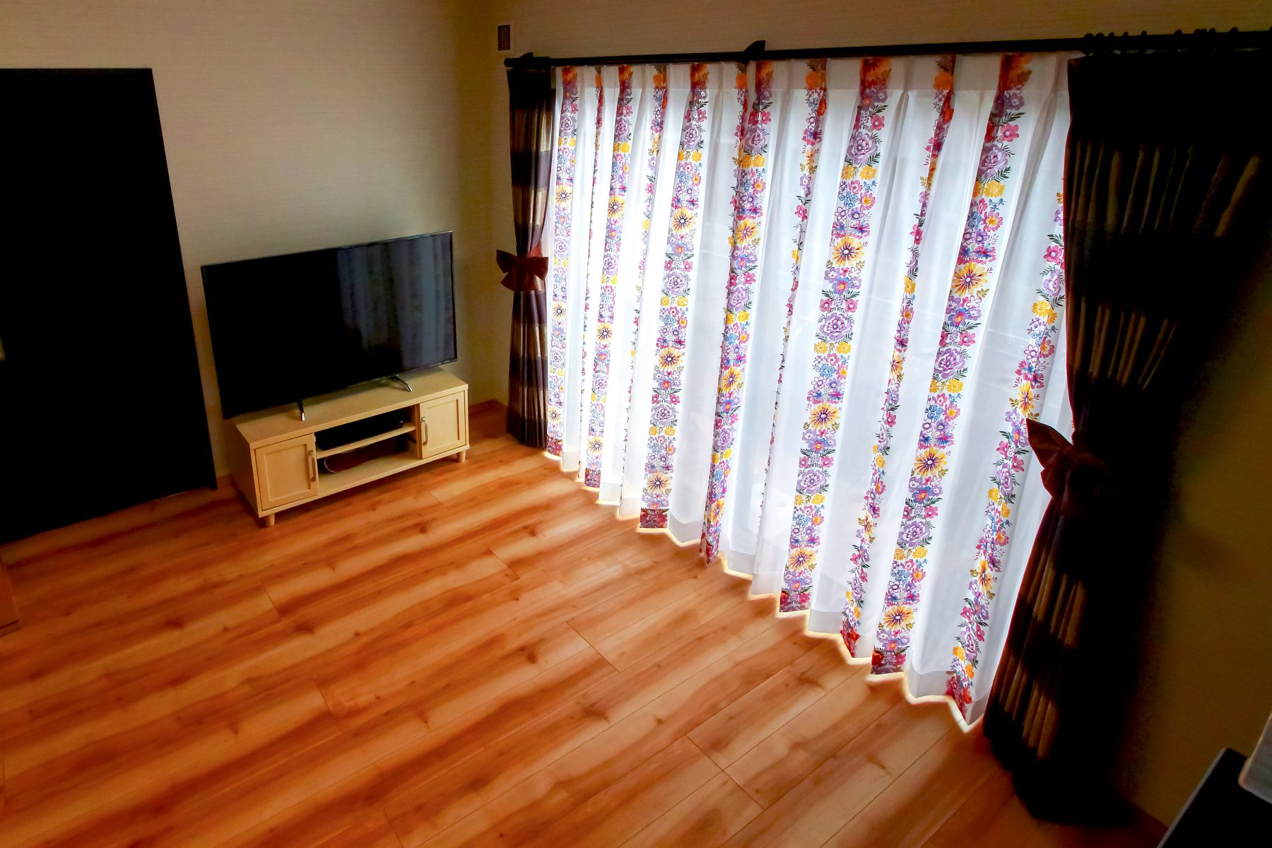 カーテンを閉めた時でもリボンがあることで可愛らしさがあります。