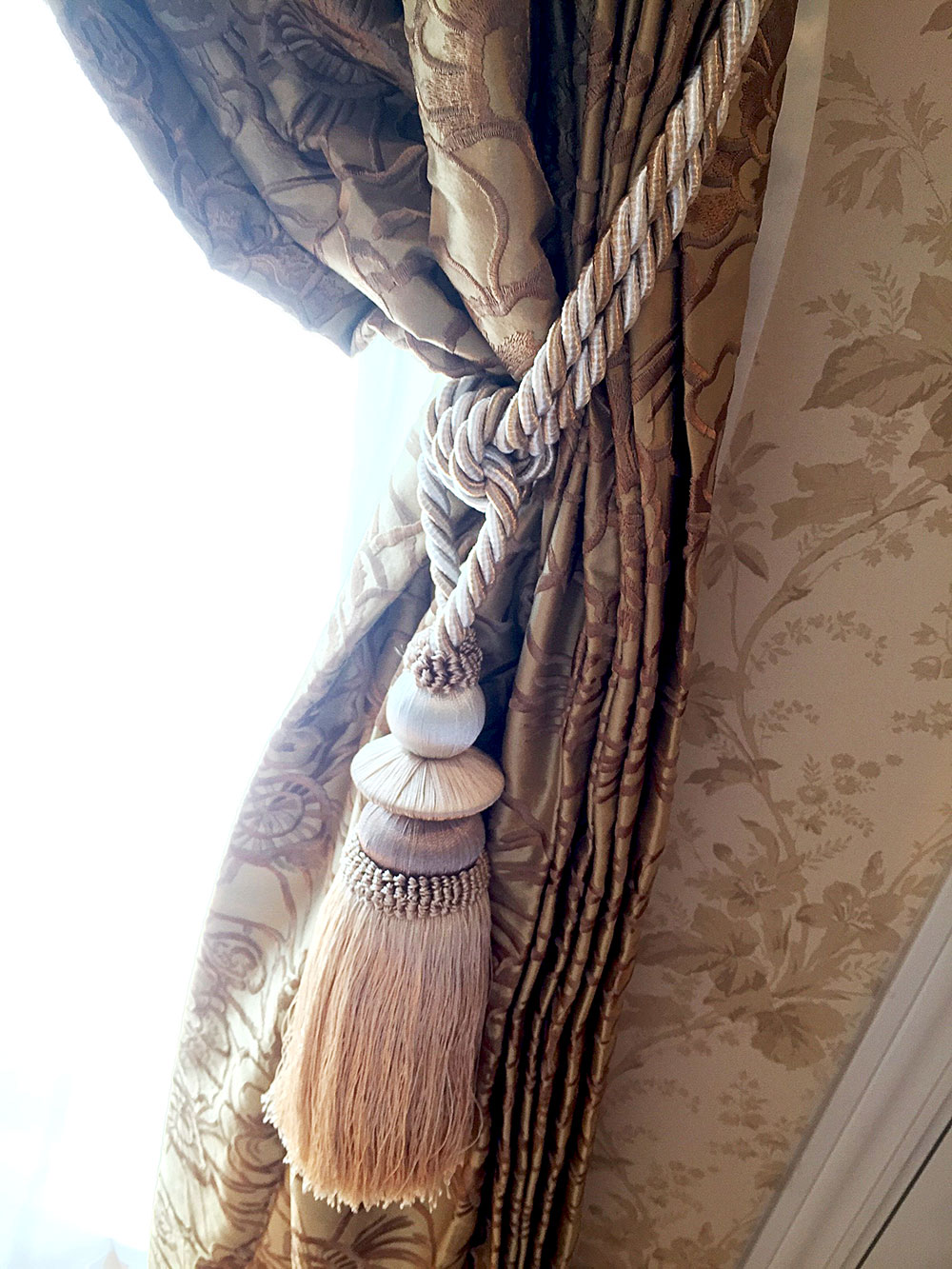 やはりキッチンの「FISBA(フィスバ)」と同じくシルク生地のものが良いという、お客様からのご要望で「FISBA(フィスバ)」にて再度ご提案させて頂くことに。 写真では、この生地感は伝わりにくいですが、シルクならではの手触り、質感、光沢感。どれを取っても一級品です。お家全体で統一感のある素敵なカーテンに仕上がりました。