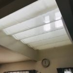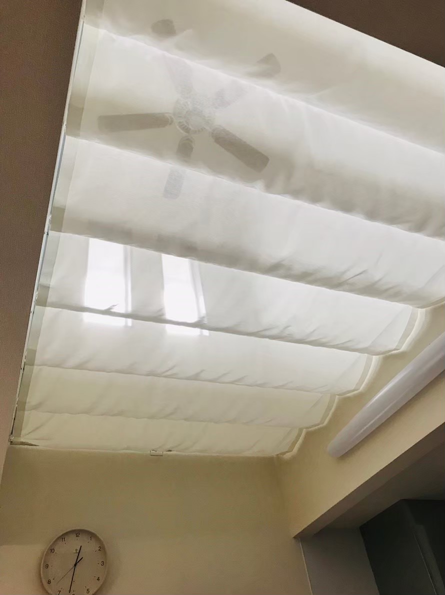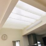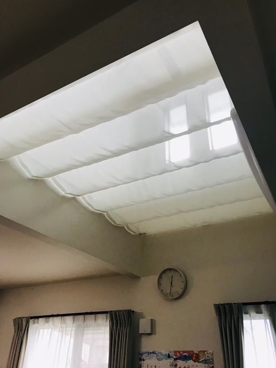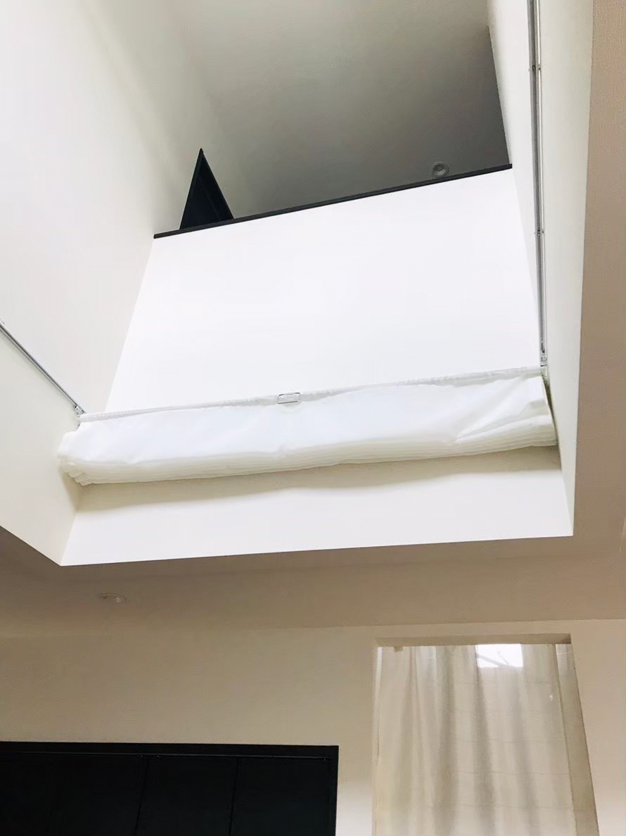 吹き抜けのリビングに天幕のカーテンを取り付けました。