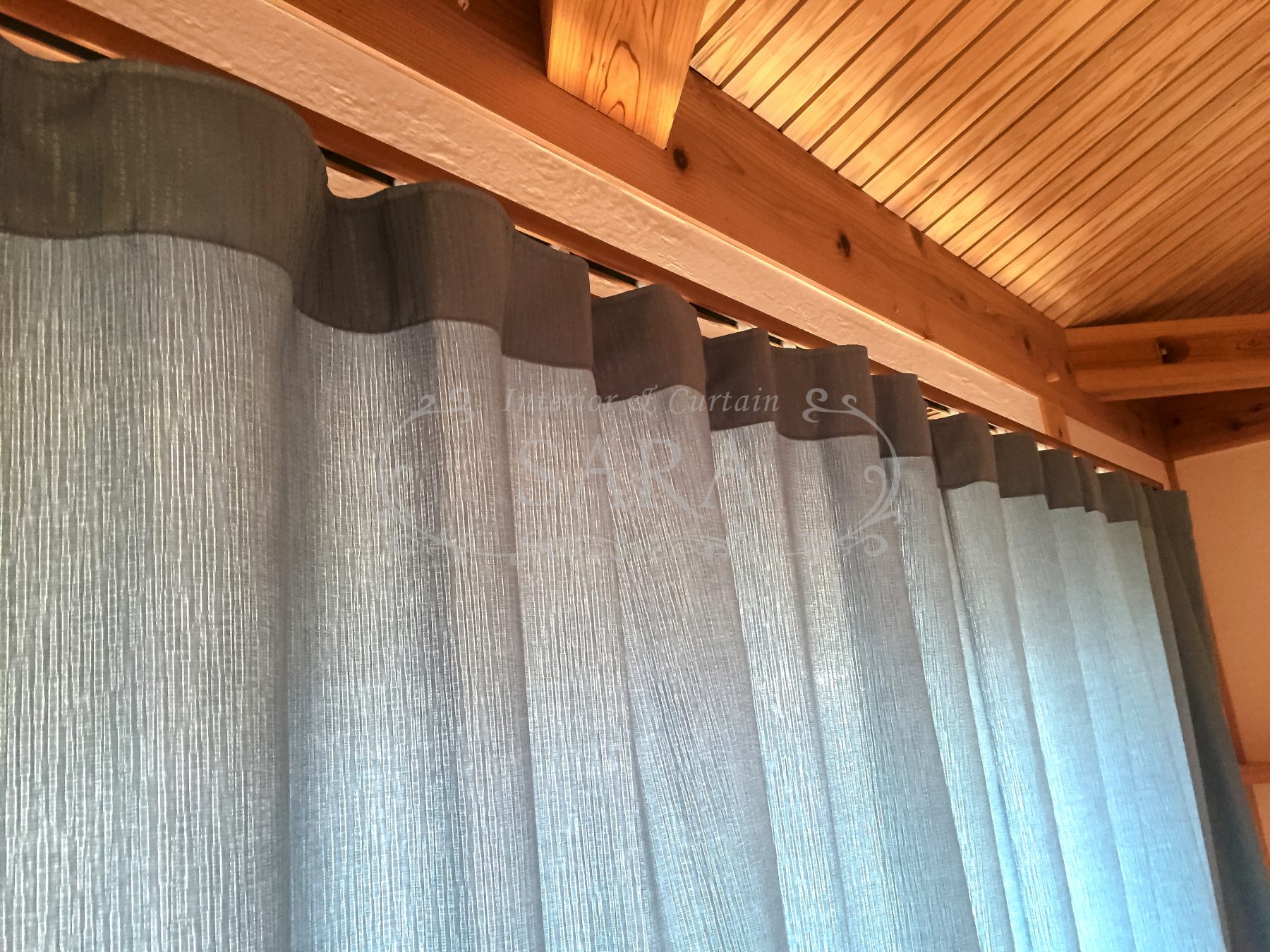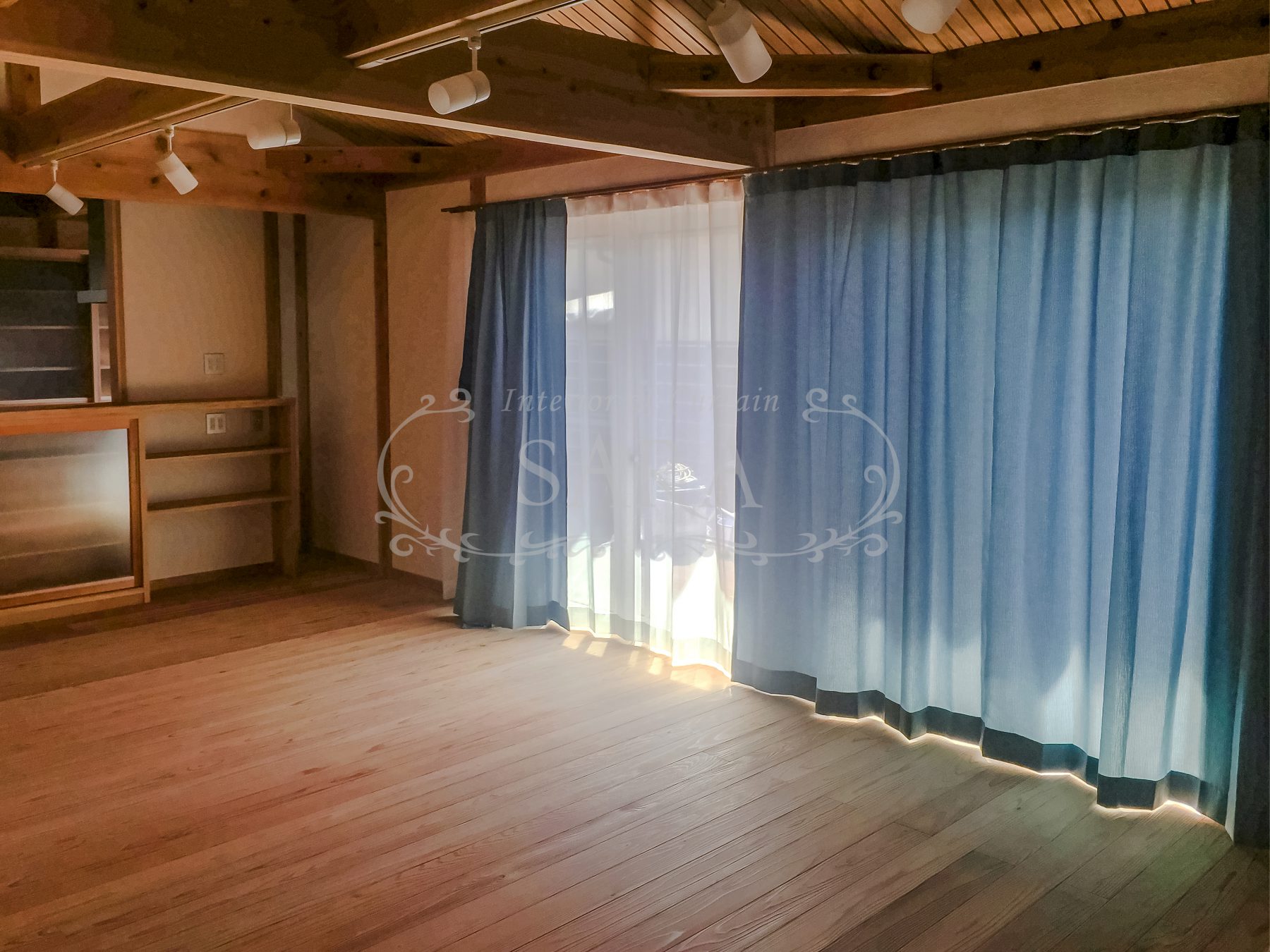 カーテンは、種類や空間によって、フラットで敢えてオーダーしたり、逆に3倍ヒダで作ったりすることで、空間とマッチします。