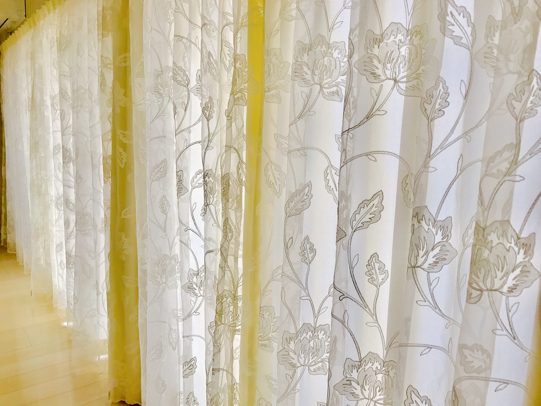 白のカーテンがご希望でしたが、真っ白だったり生成りだったり、白の中でも様々な種類があります。 お部屋全体を見ても、いろいろな”白”があります。