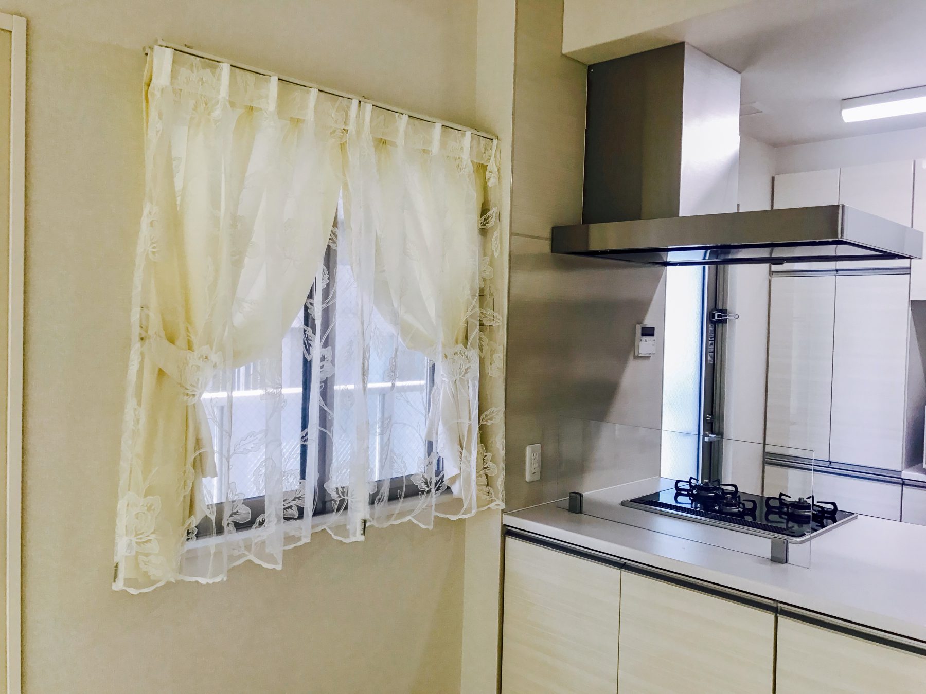 試着した際に真っ白の生地より生成りの方が、手前のレースの刺繍がキレイに出たからです。 フロントレースで、ワンランク上のこだわり空間になりました。