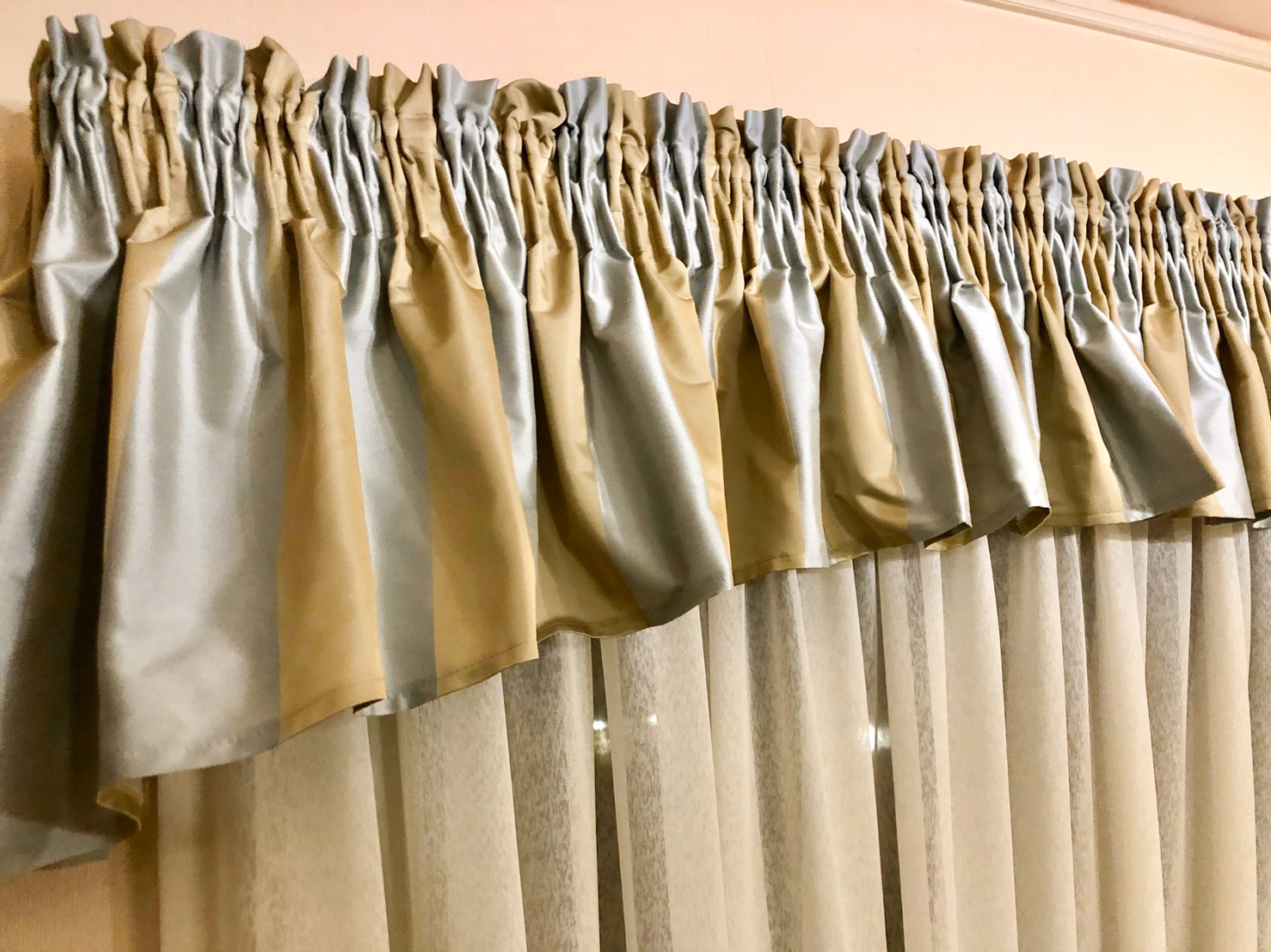 一つは大きなアーチ型バランス、二つ目は生地をたっぷり使ったギャザーバランス、3つ目シェードと共にフラットバランスです。
