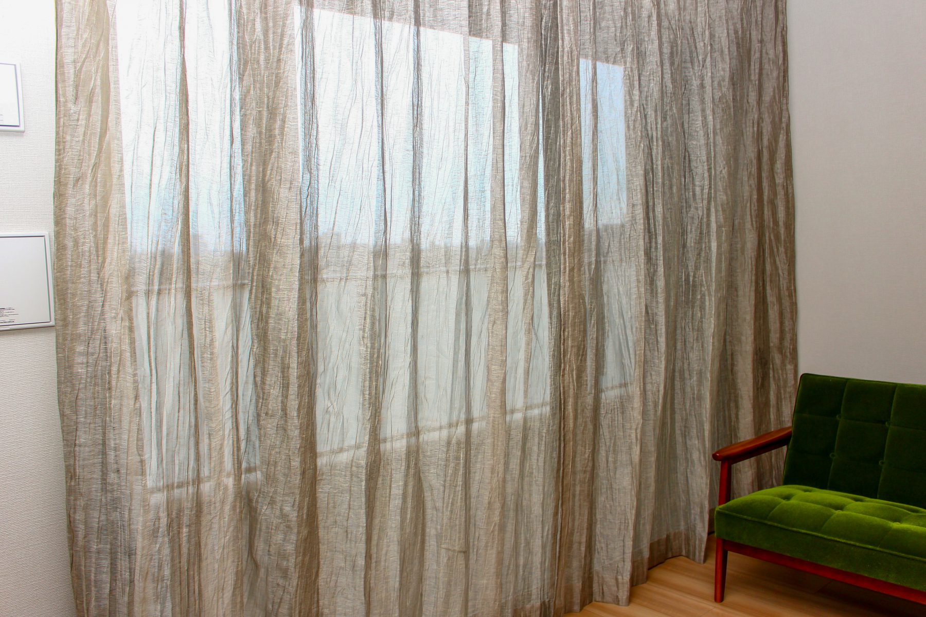 80%麻で、クラッシュ加工で立体感があり、無造作な中に上品でかっこいい空間を演出してくれます。