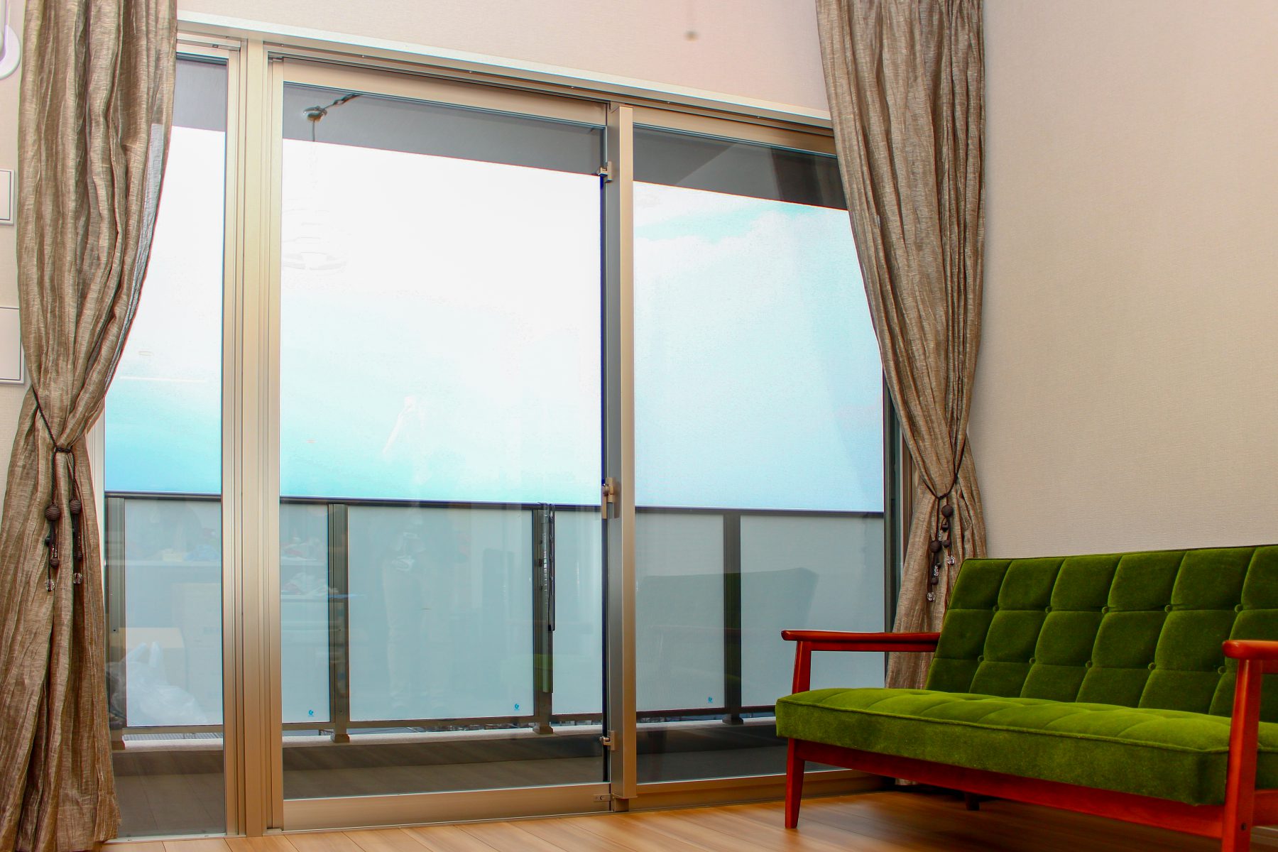 外からの視線が気にならないお部屋なので、レースカーテンをさらりと1枚お付けしました。